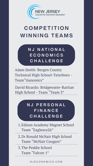 Each year, the New Jersey Council for Economic Education hosts an annual contest for high school students to test their economic knowledge with other students throughout the state. The New Jersey competition is fully online, free, and has divisions based on the amount of economic experience each student has.